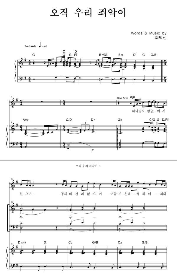 | 오직 우리 죄악이 | 성가 4부 + 피아노 반주 |