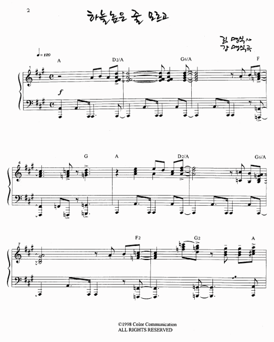 '하늘 높은줄 모르고' 의 다른 악보형식