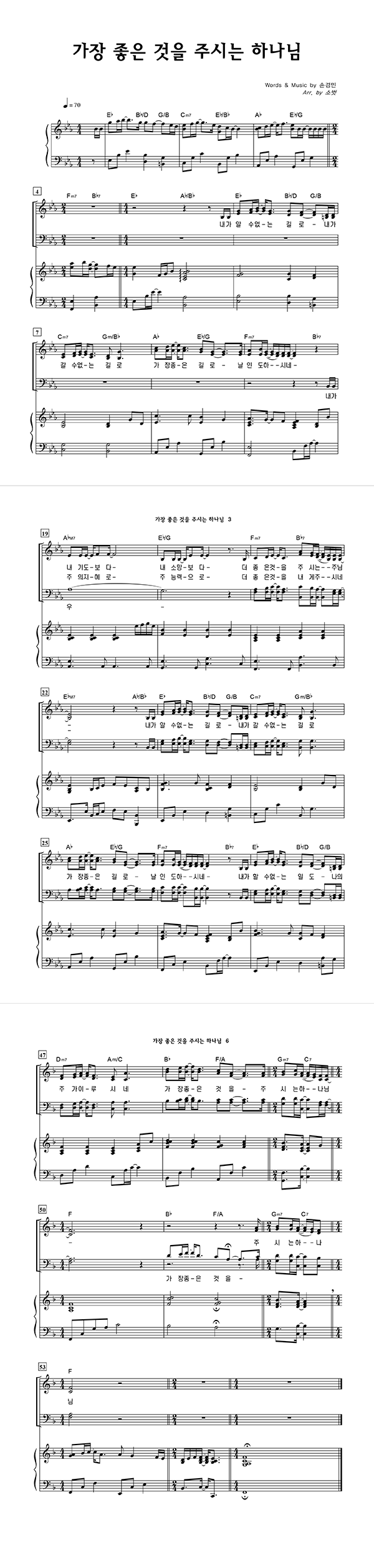 | 가장 좋은 것을 주시는 하나님 | 성가 3부 + 피아노 반주 |