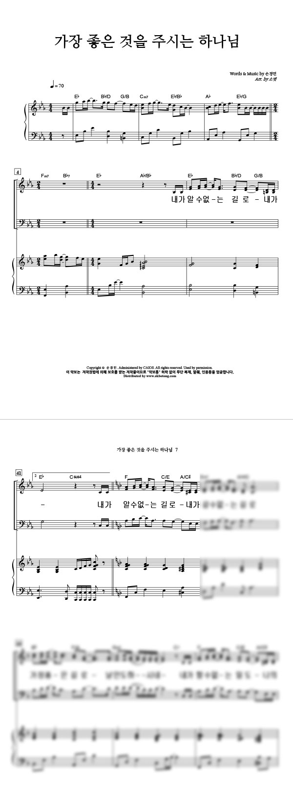 | 가장 좋은 것을 주시는 하나님 | 성가 4부 + 피아노 반주 |
