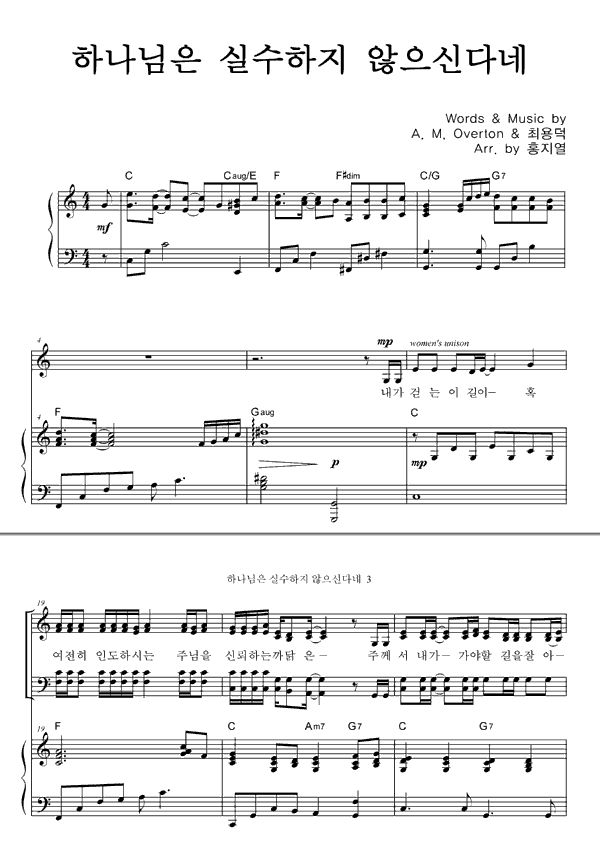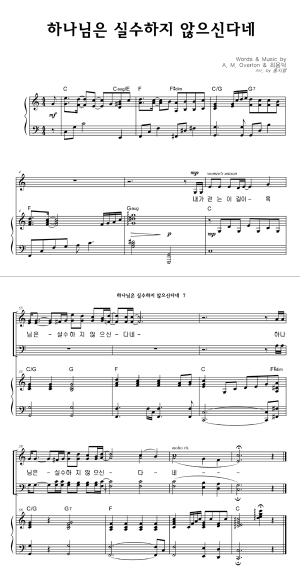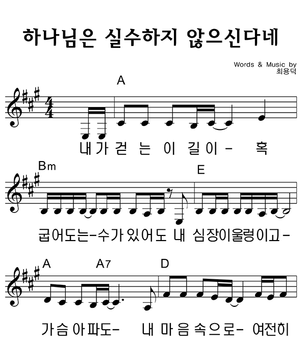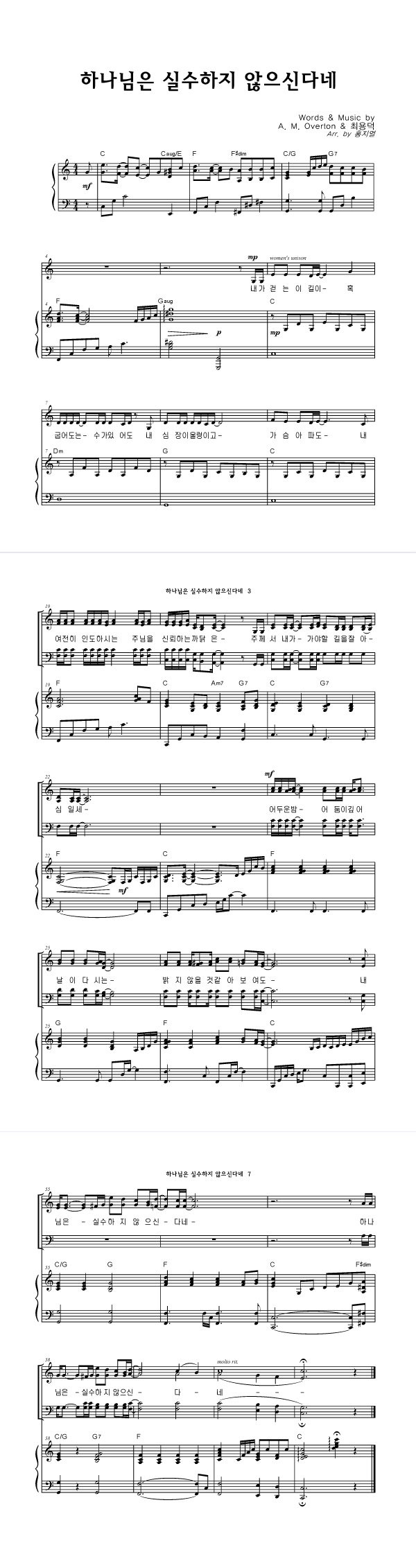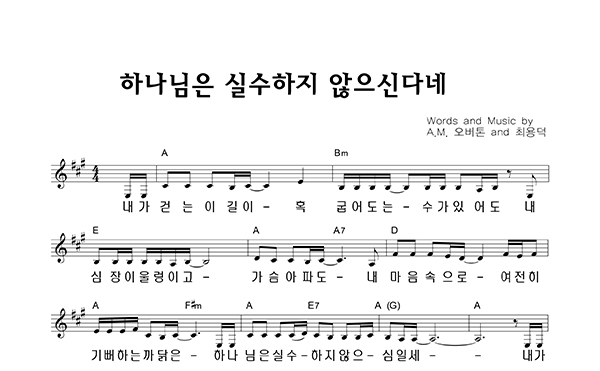| 하나님은 실수하지 않으신다네 | 성가 4부 + 피아노 반주 |