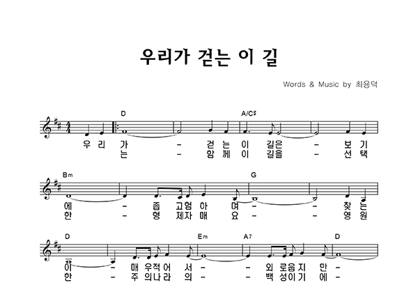 | 우리가 걷는 이 길 | 성가 2부 + 피아노 반주 |