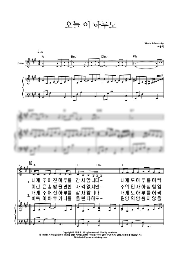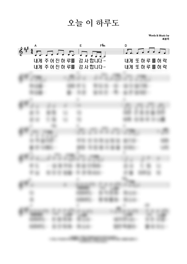 | 오늘 이 하루도 | 성가 2부 + 피아노 반주 |