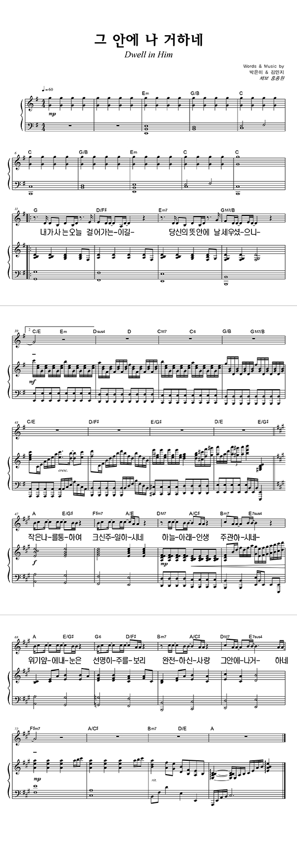 '그 안에 나 거하네' 의 다른 악보형식