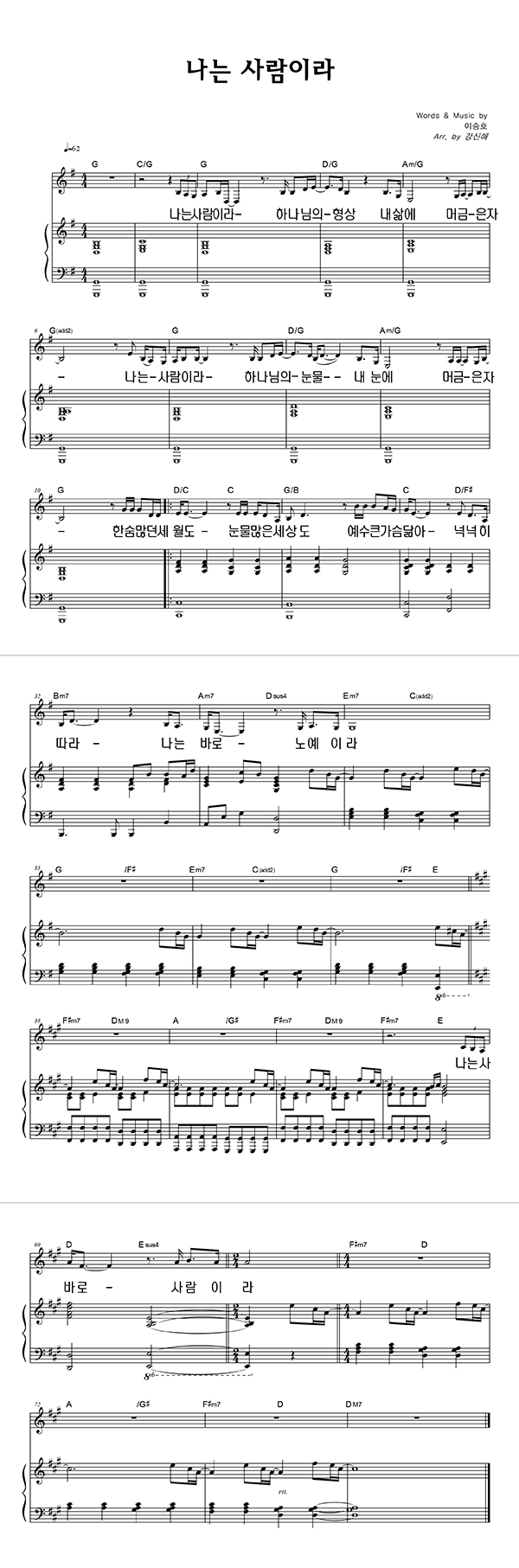 '나는 사람이라' 의 다른 악보형식