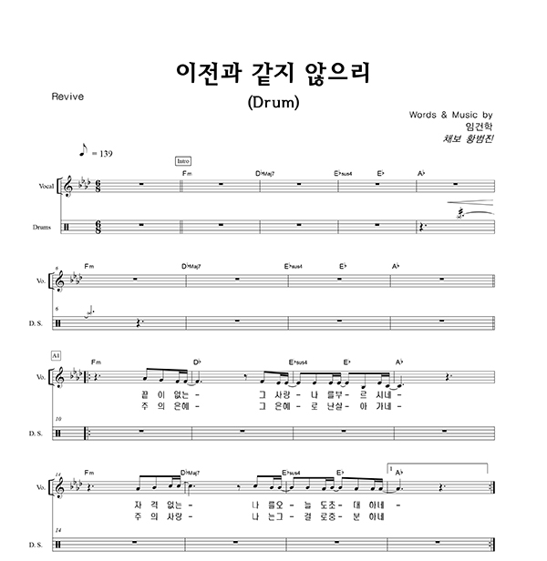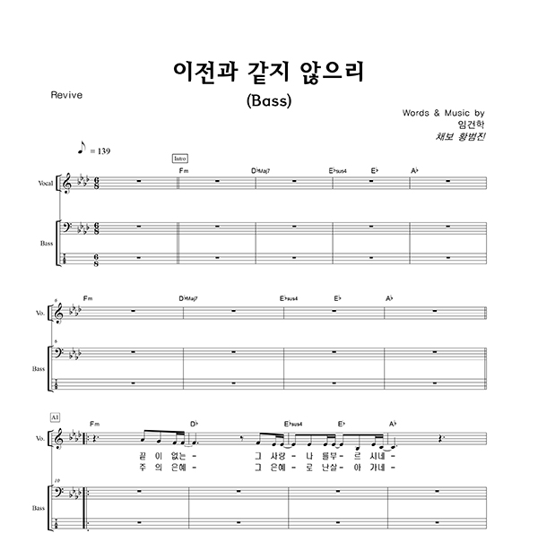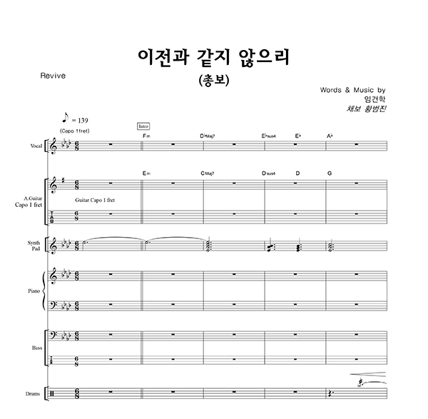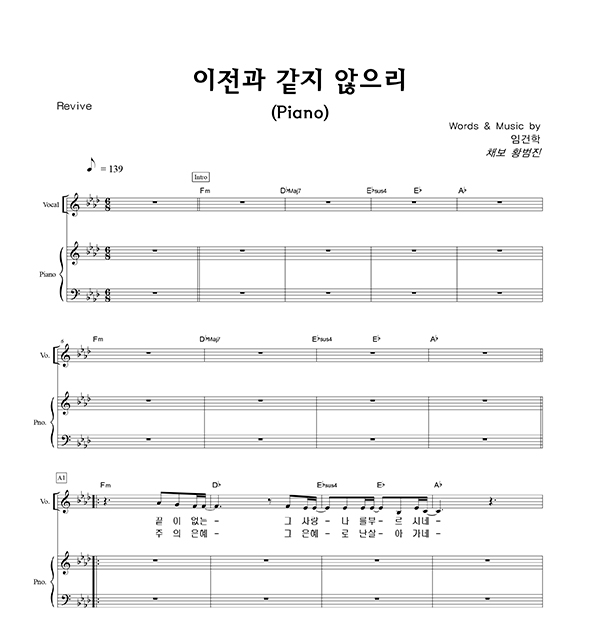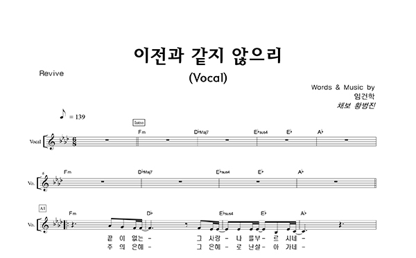 '이전과 같지 않으리' 의 다른 악보형식