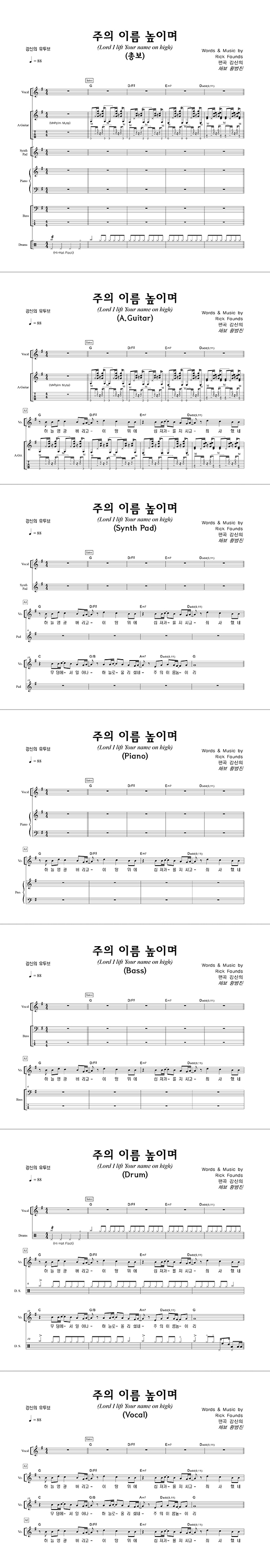 '주의 이름 높이며 (Modern Rock Ver.)' 의 다른 악보형식