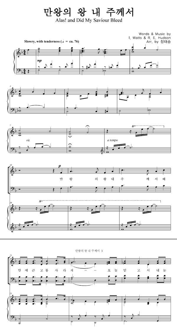 | 만왕의 왕 내 주께서 | 성가 4부 + 피아노 반주 |