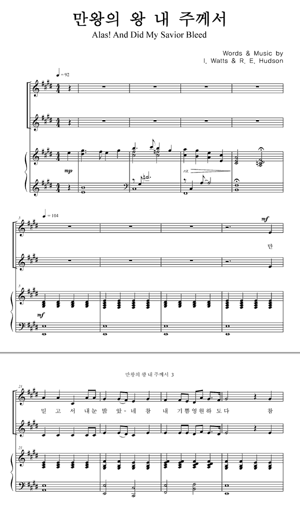 | 만왕의 왕 내 주께서 | 성가 2부 + 피아노 반주 |