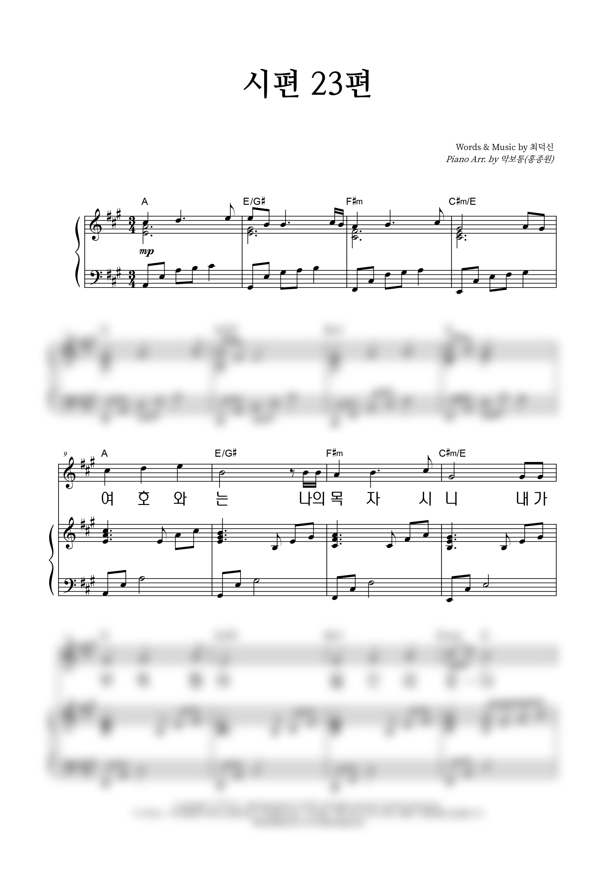 | 시편 23편 (여호와는 나의 목자시니) | 성가 4부 + 피아노 반주 |