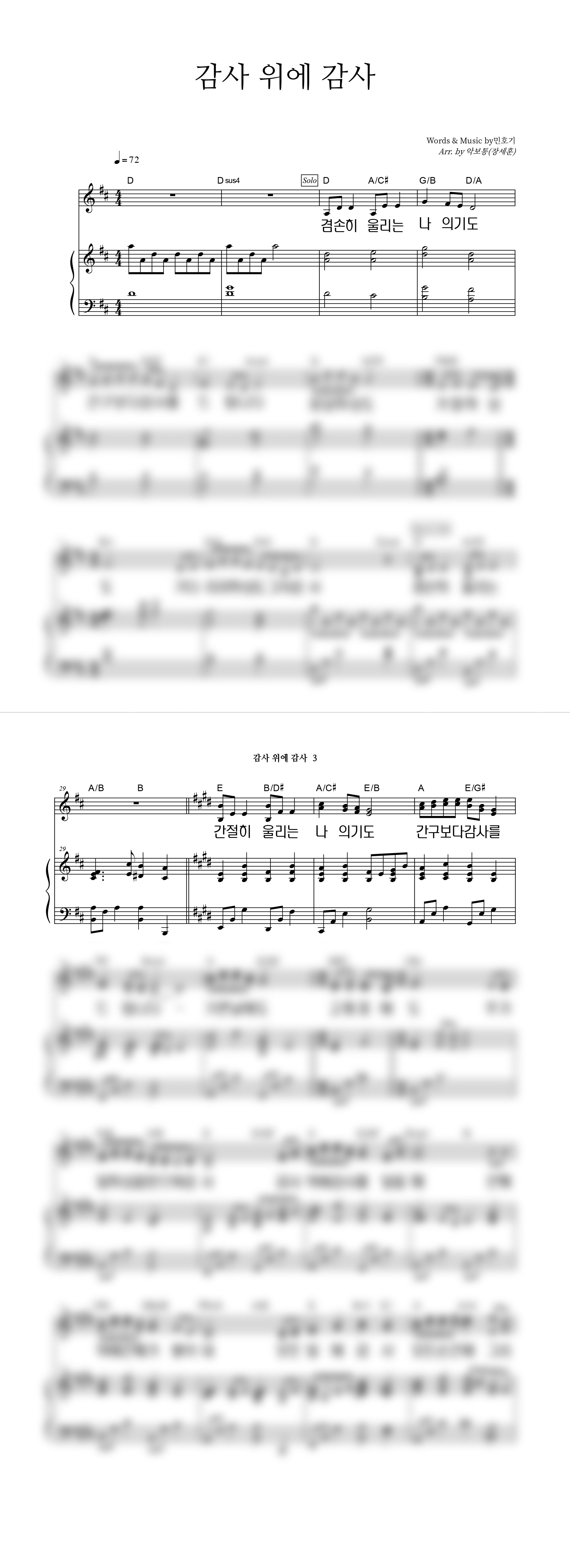 | 감사 위에 감사 | 성가 4부 + 피아노 반주 |