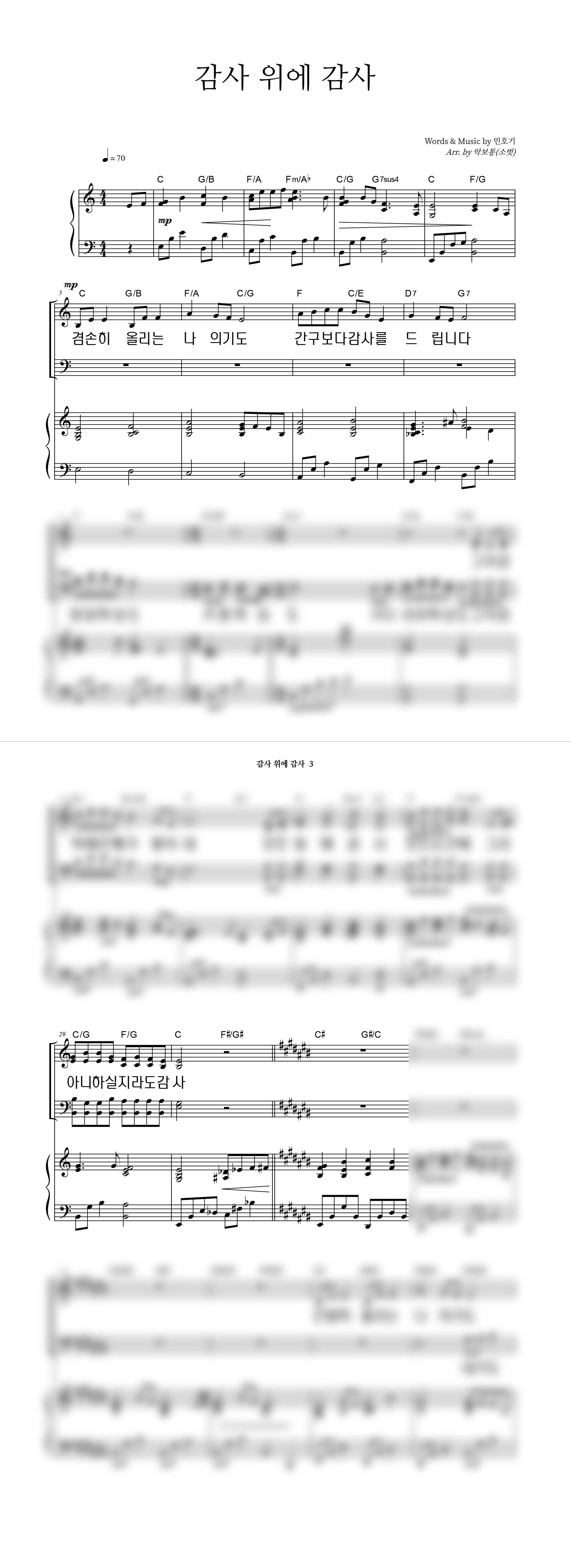 | 감사 위에 감사 | 성가 3부 + 피아노 반주 |