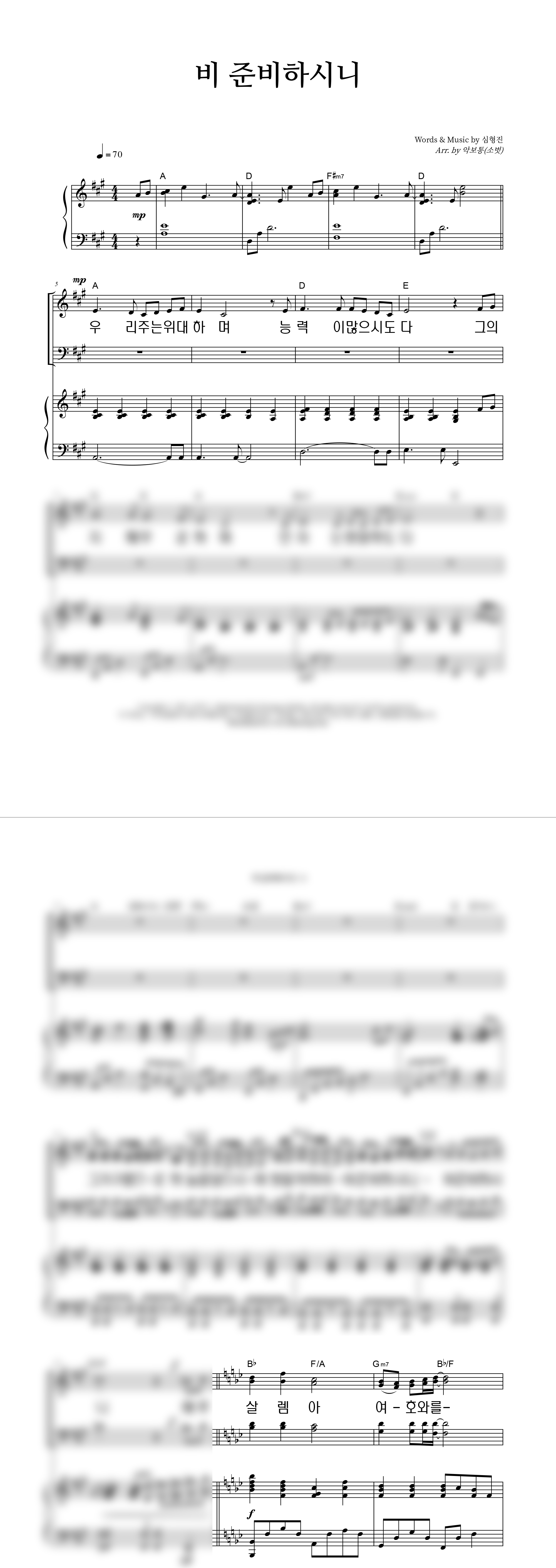 '비 준비하시니' 의 다른 악보형식