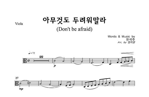 '아무 것도 두려워 말라' 의 다른 악보형식