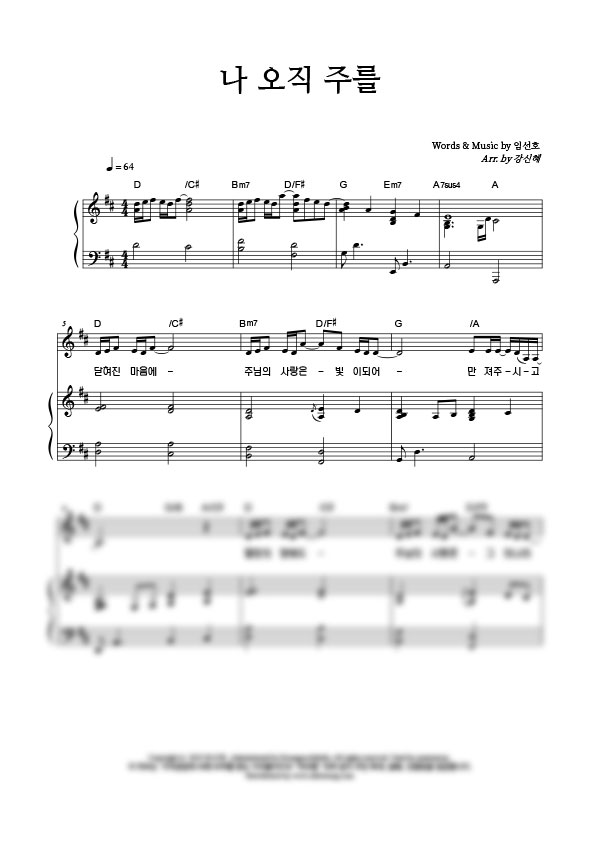 | 나 오직 주를 (인도 : 소진영) | 성가 4부 + 피아노 반주 |