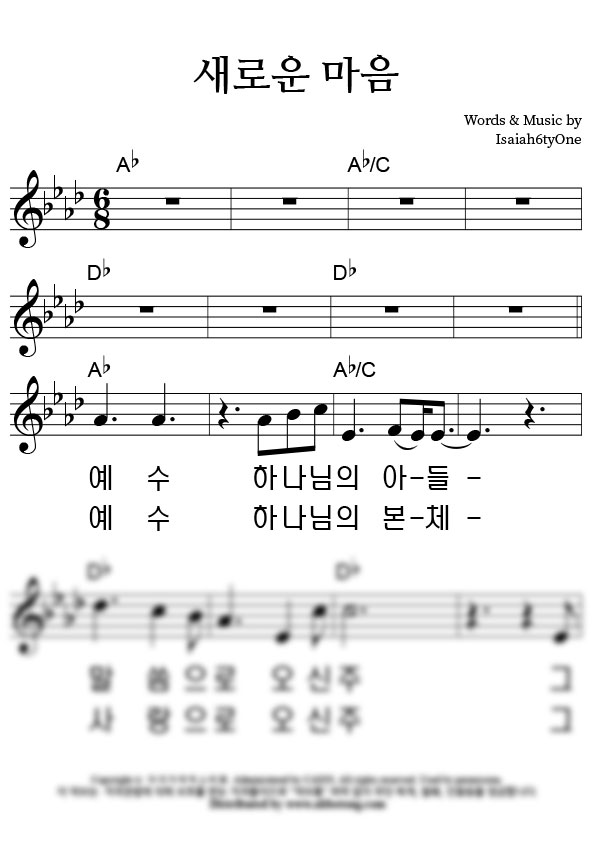 '아이자야 씩스티원 - 새로운 마음' 의 다른 악보