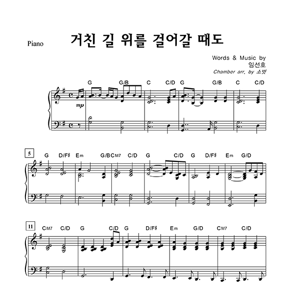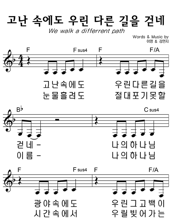 '거친 길 위를 걸어갈때도' 의 다른 악보형식