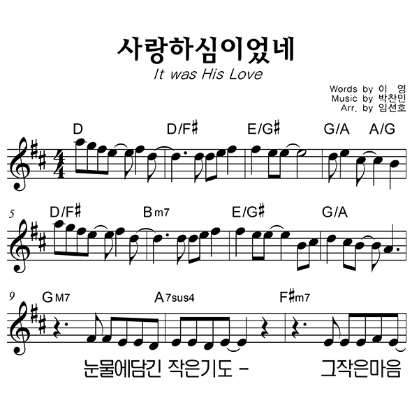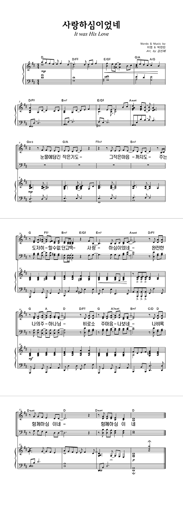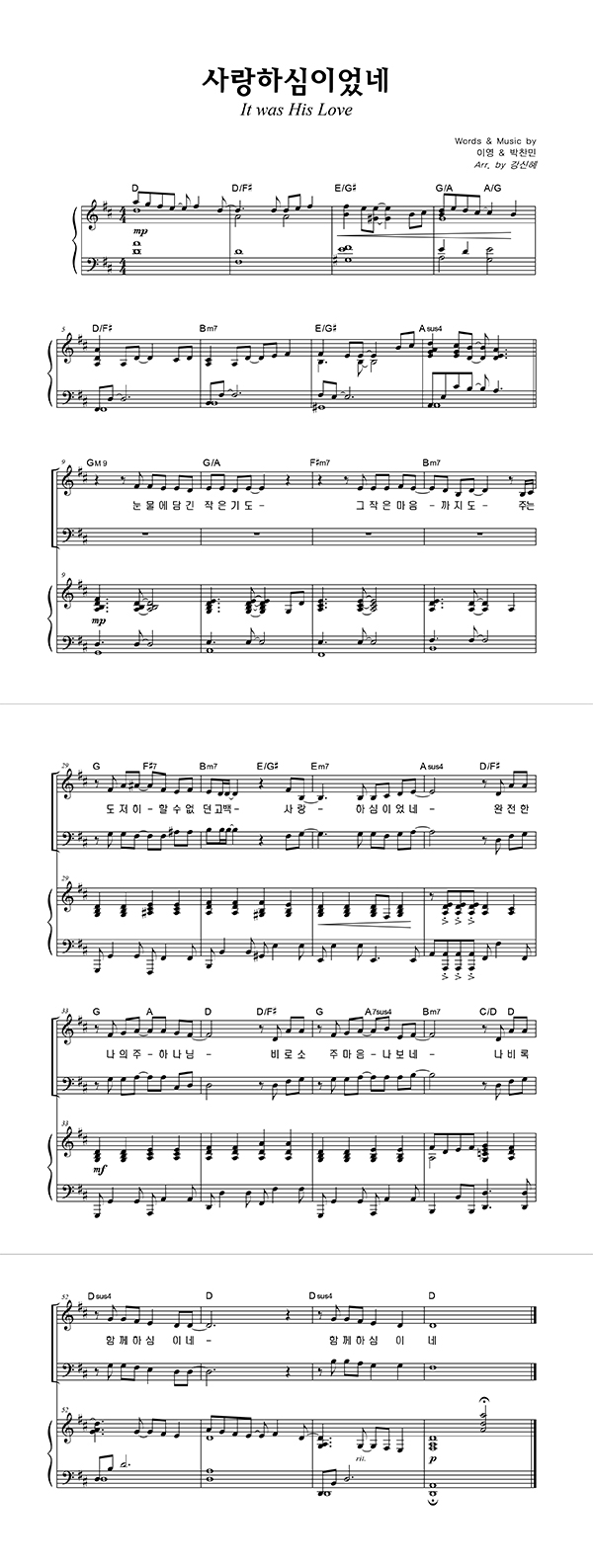 | 사랑하심이었네 | 성가 4부 + 피아노 반주 |