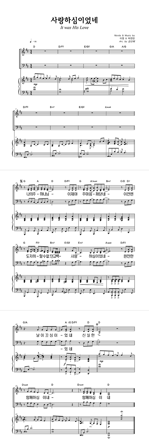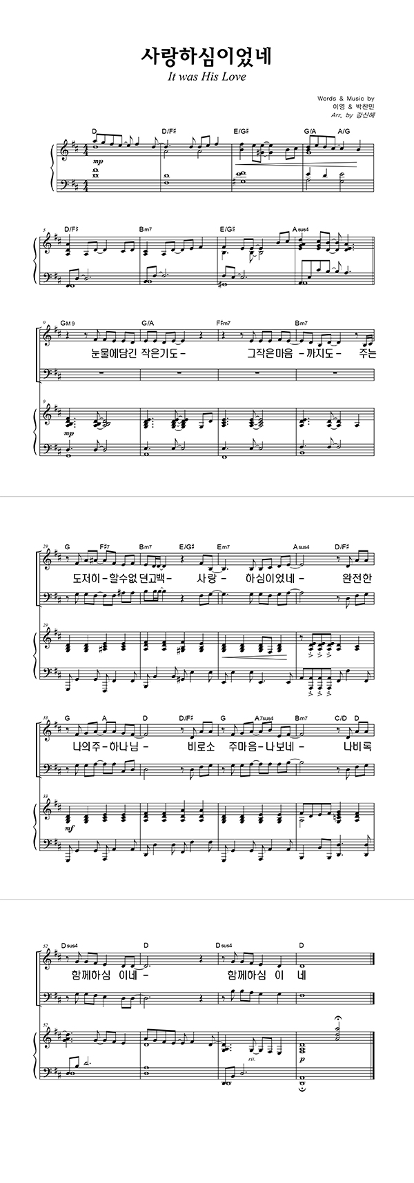 | 사랑하심이었네 | 성가 3부 + 피아노 반주 |