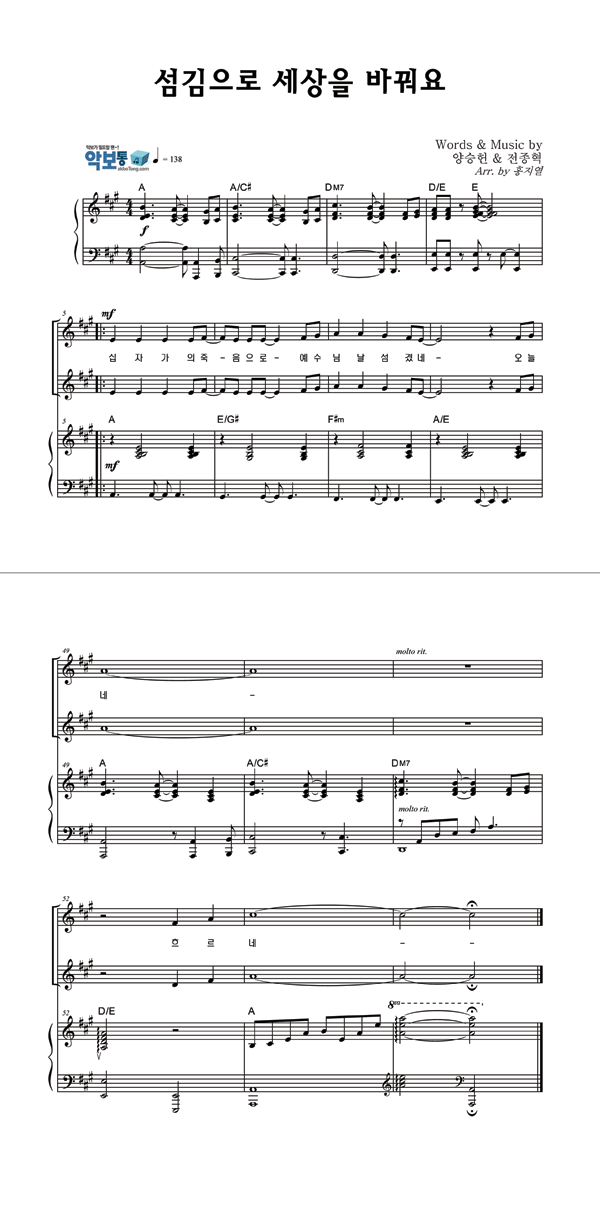 '섬김으로 세상을 바꿔요' 의 다른 악보형식