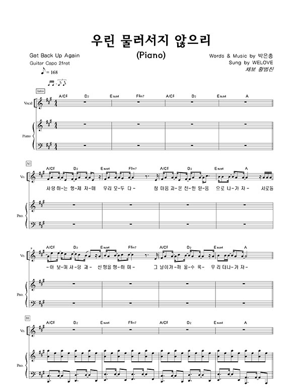 | 다시 일어나 | 성가 2부 + 피아노 반주 |