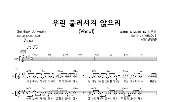 '우린 물러서지 않으리' 의 다른 악보형식