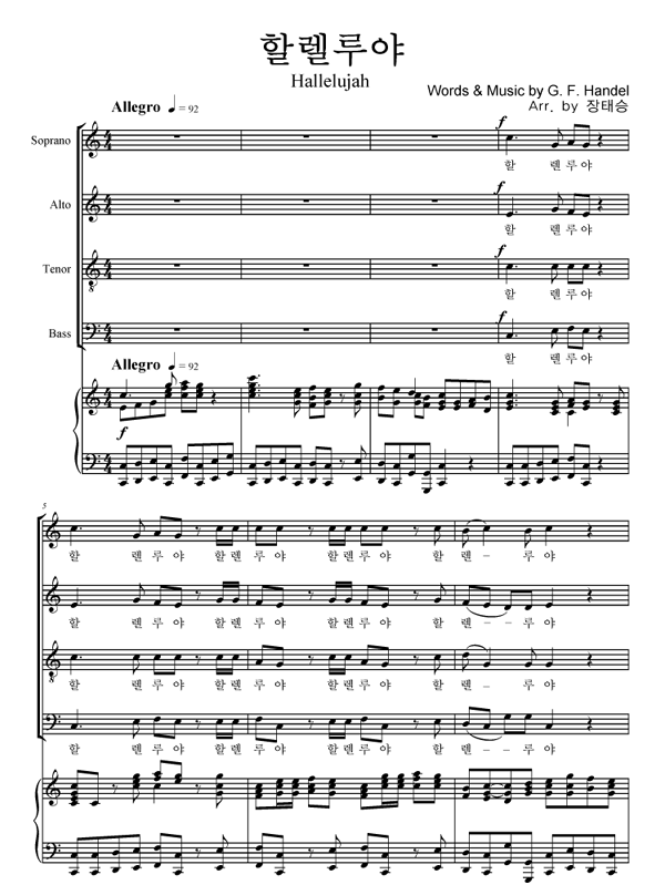 | 할렐루야 | 성가 4부 + 피아노 반주 |