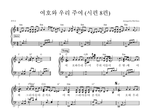 | 평강의 왕이요 | 성가 4부 + 피아노 반주 |