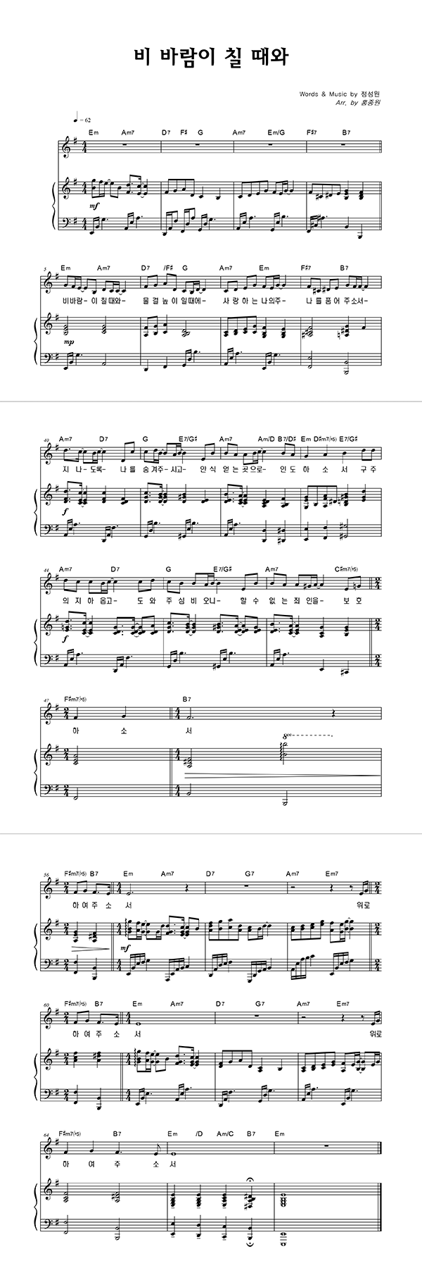 '비 바람이 칠 때와' 의 다른 악보형식