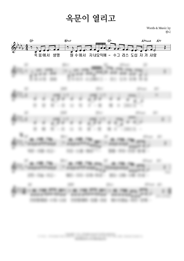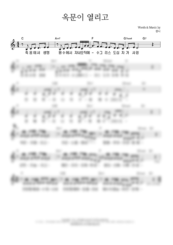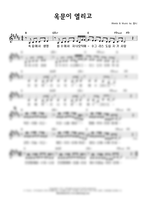 '옥문이 열리고' 의 다른 악보형식