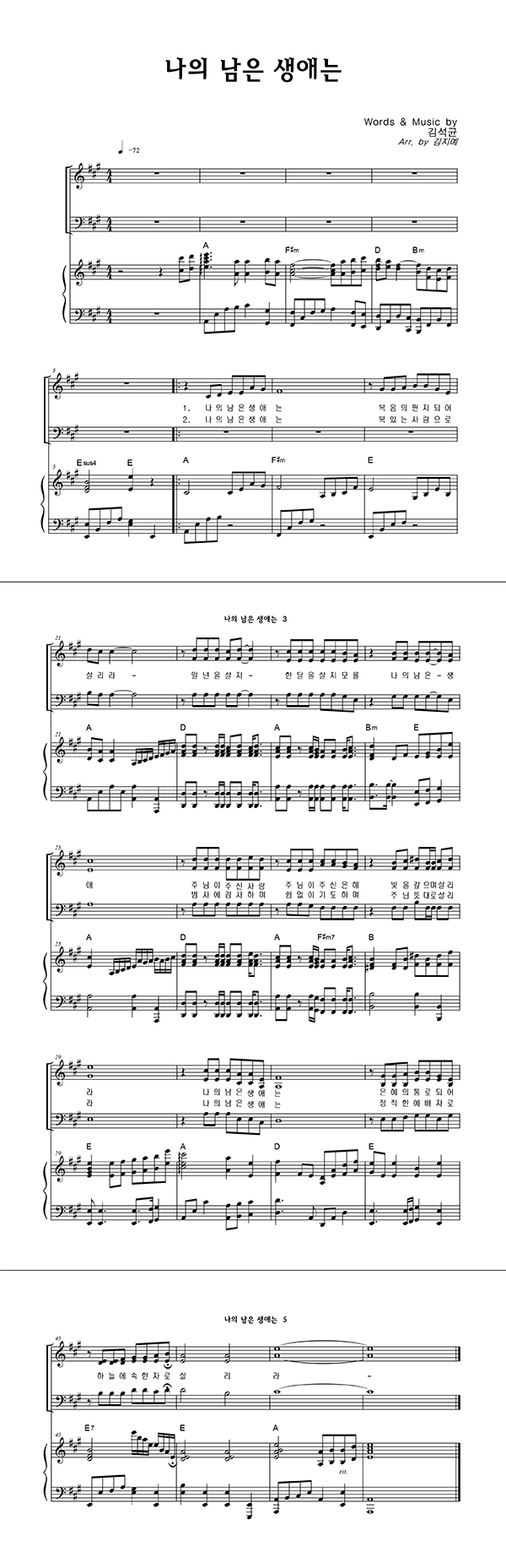 | 나의 남은 생애는 | 성가 3부 + 피아노 반주 |