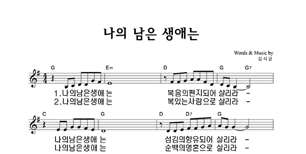 | 나의 남은 생애는 | 성가 4부 + 피아노 반주 |