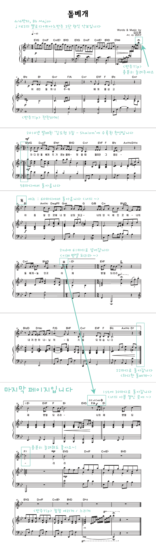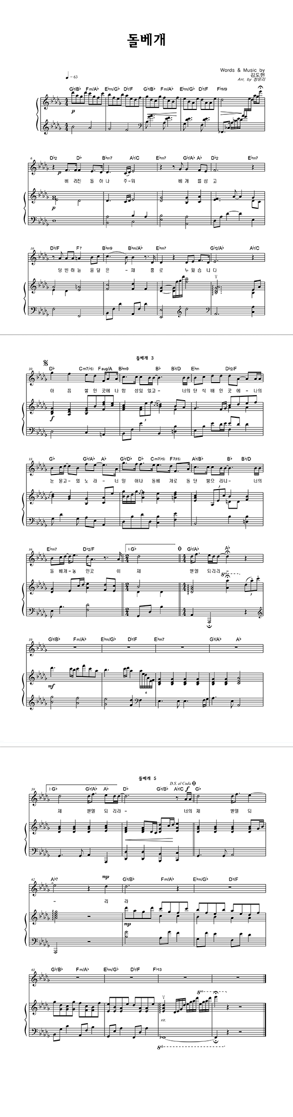 '돌베개' 의 다른 악보형식