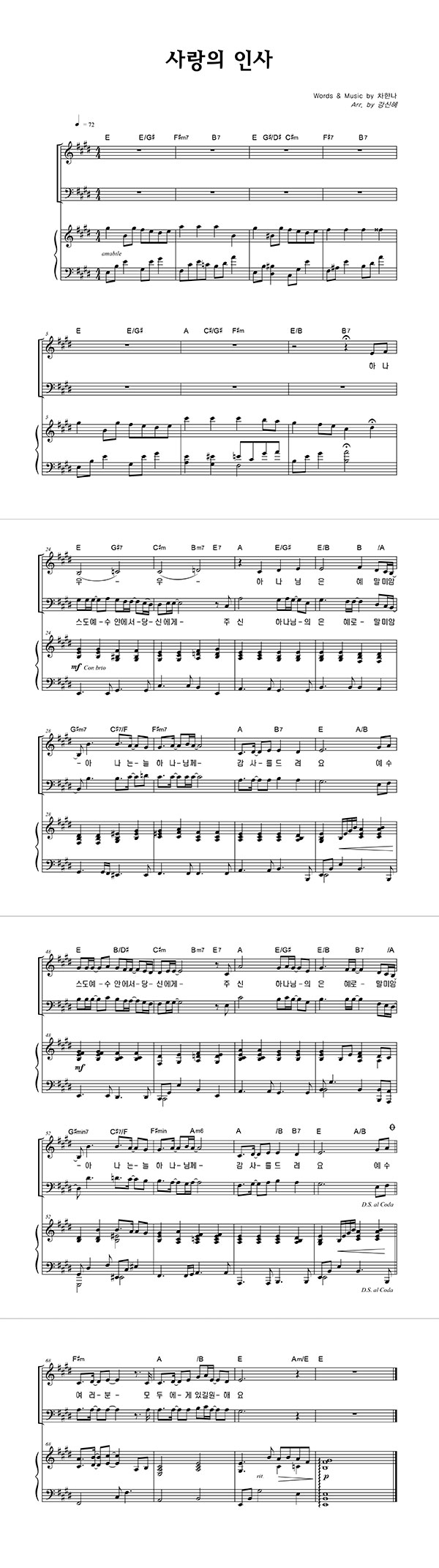 | 사랑의 인사 큰글씨 | 성가 4부 + 피아노 반주 |