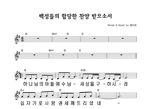 | 백성들의 합당한 찬양을 받으소서 큰글씨 | 단선 |