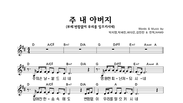'주 내 아버지 (부제 : 변함없이 우리를 일으키시네) My Father' 의 다른 악보형식