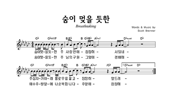 '숨이 멎을 듯한 Breathtaking' 의 다른 악보형식