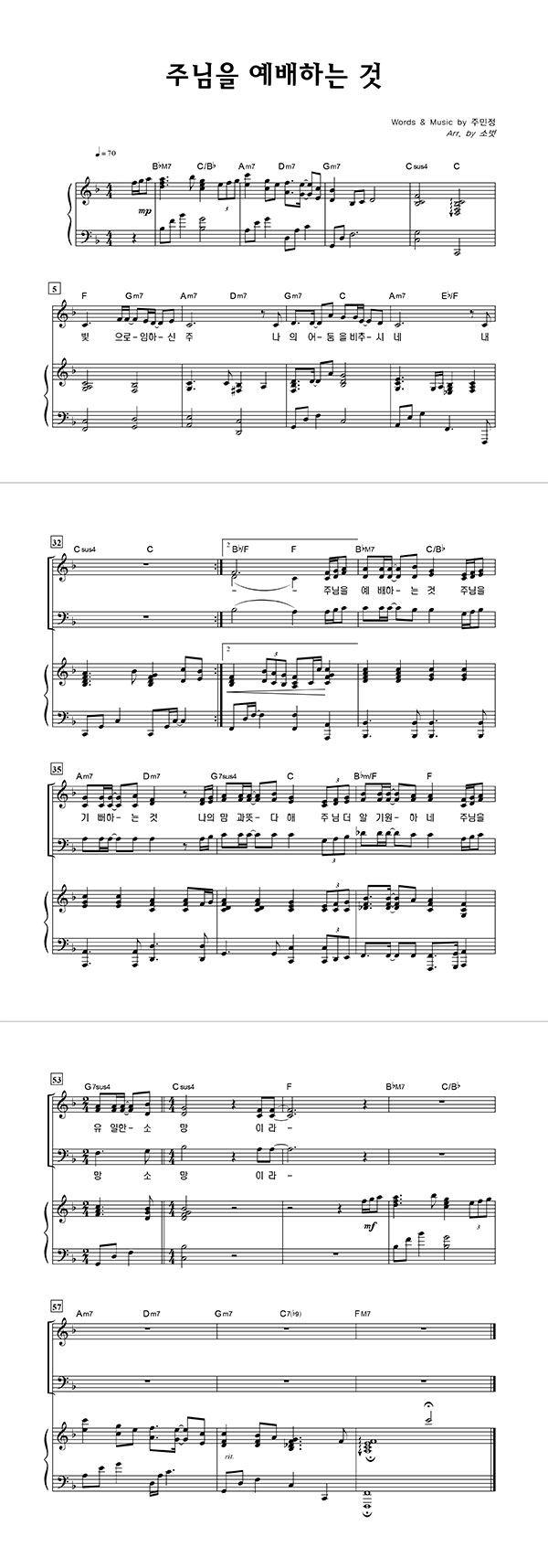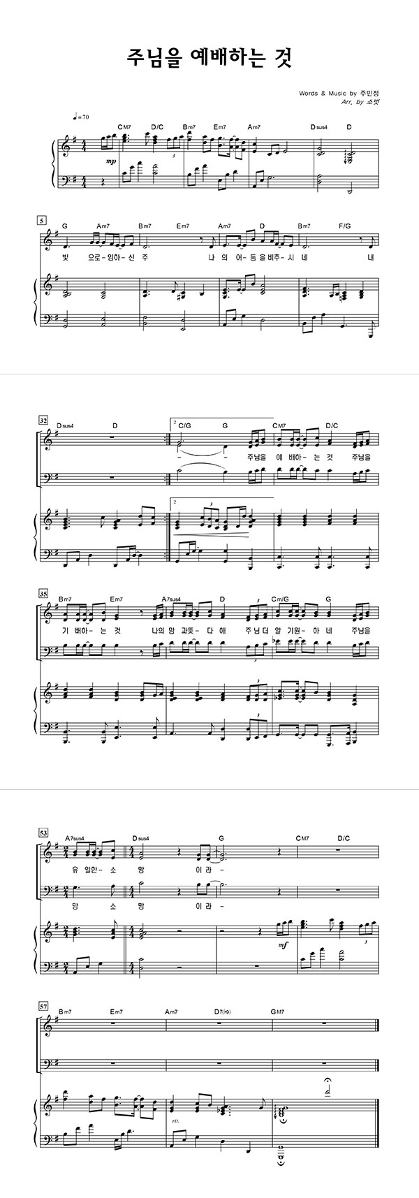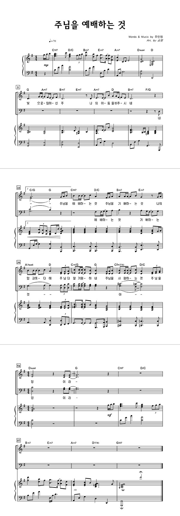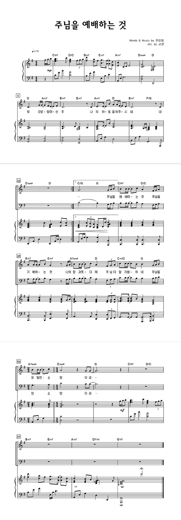 | 주님을 예배하는 것 | 성가 2부 + 피아노 반주 |