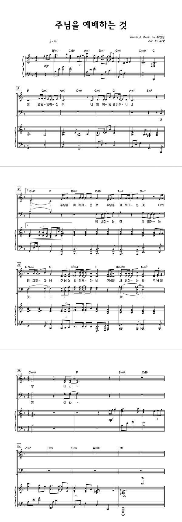 | 주님을 예배하는 것 | 성가 3부 + 피아노 반주 |