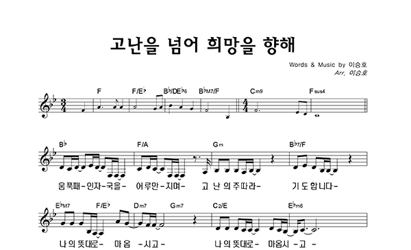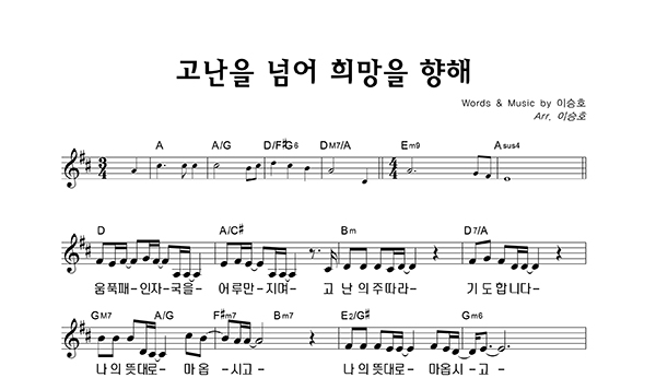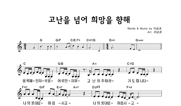'고난을 넘어 희망을 향해' 의 다른 악보형식