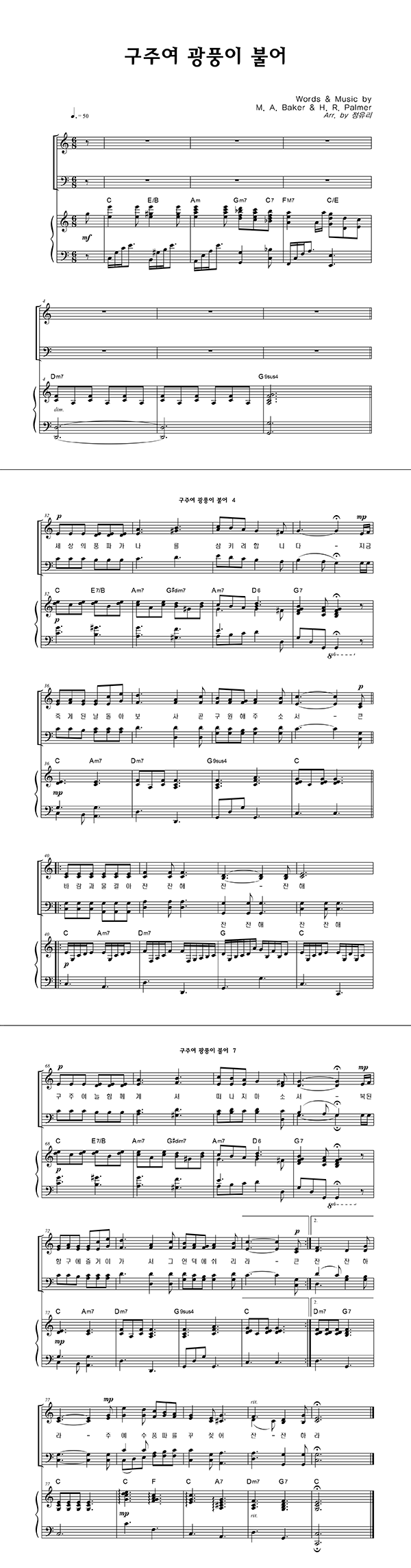 | 구주여 광풍이 불어 | 성가 4부 + 피아노 반주 |