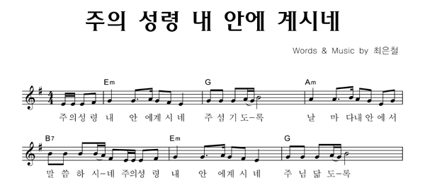 | 주의 성령 내 안에 계시네 | 단선 |