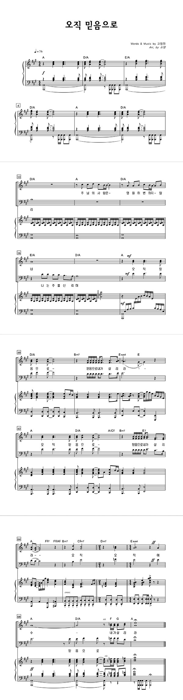 | 오직 믿음으로 | 성가 2부 + 피아노 반주 |