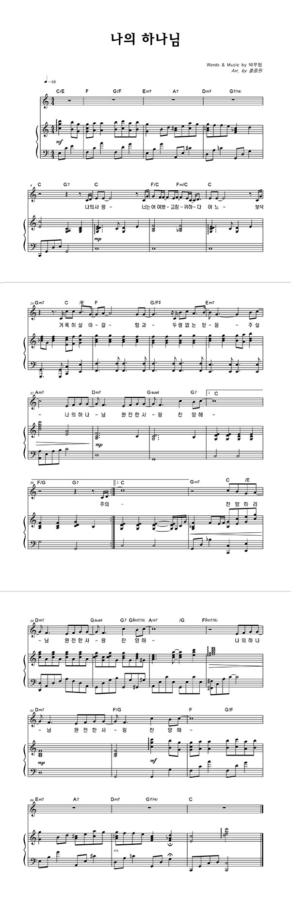 | 나의 하나님 | 성가 2부 + 피아노 반주 |