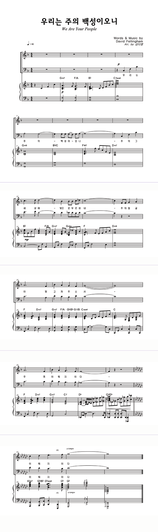 | 우리는 주의 백성이오니 | 성가 2부 + 피아노 반주 |