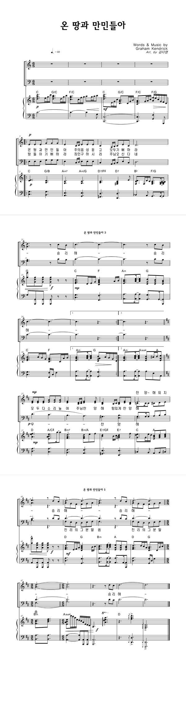 | 온 땅과 만민들아 | 성가 3부 + 피아노 반주 |