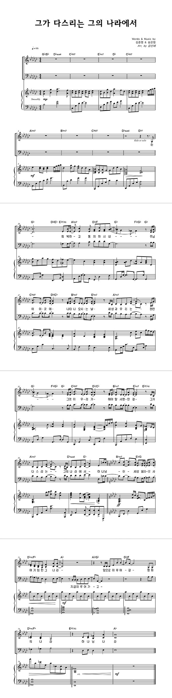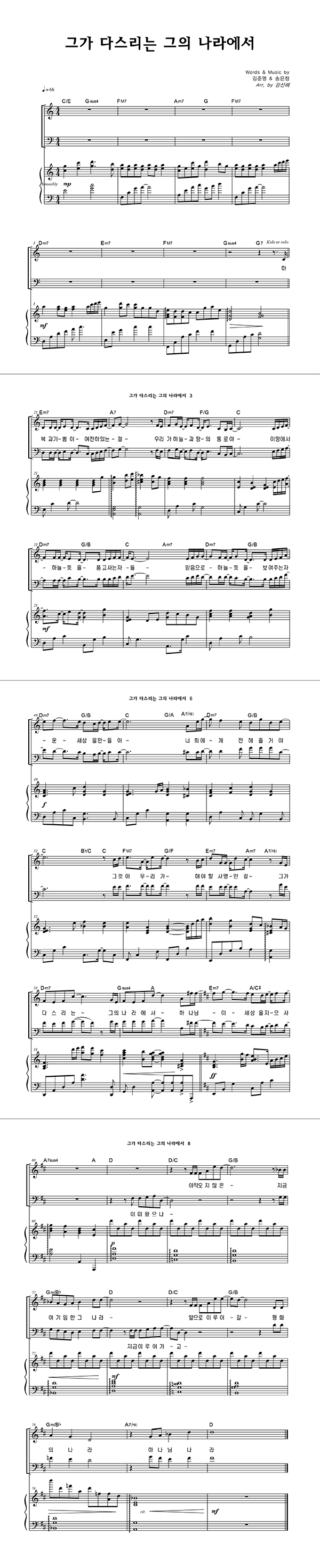 | 그가 다스리는 그의 나라에서 | 성가 3부 + 피아노 반주 |
