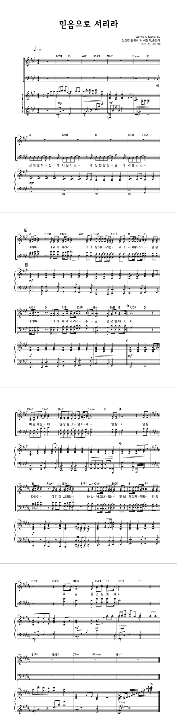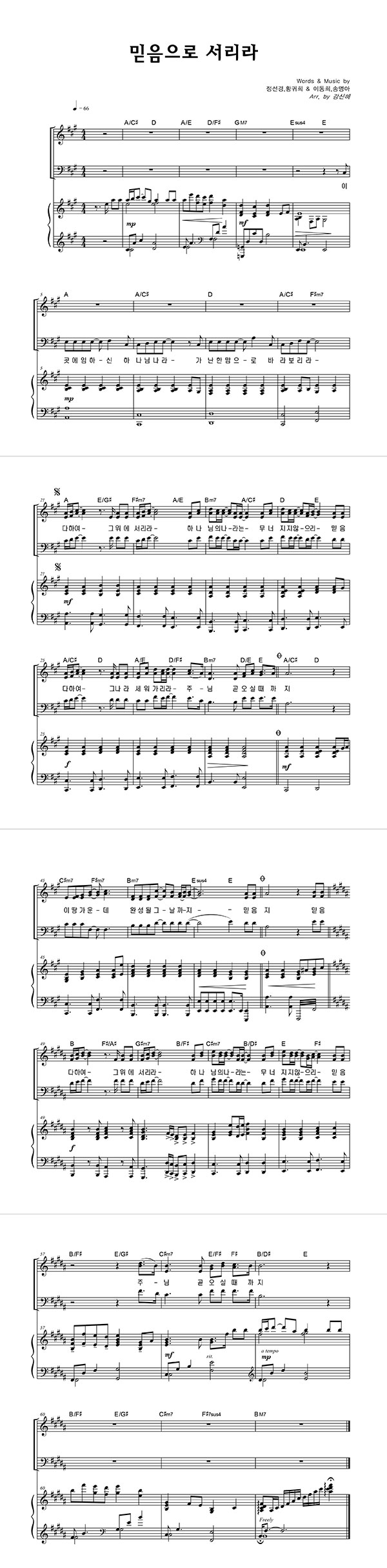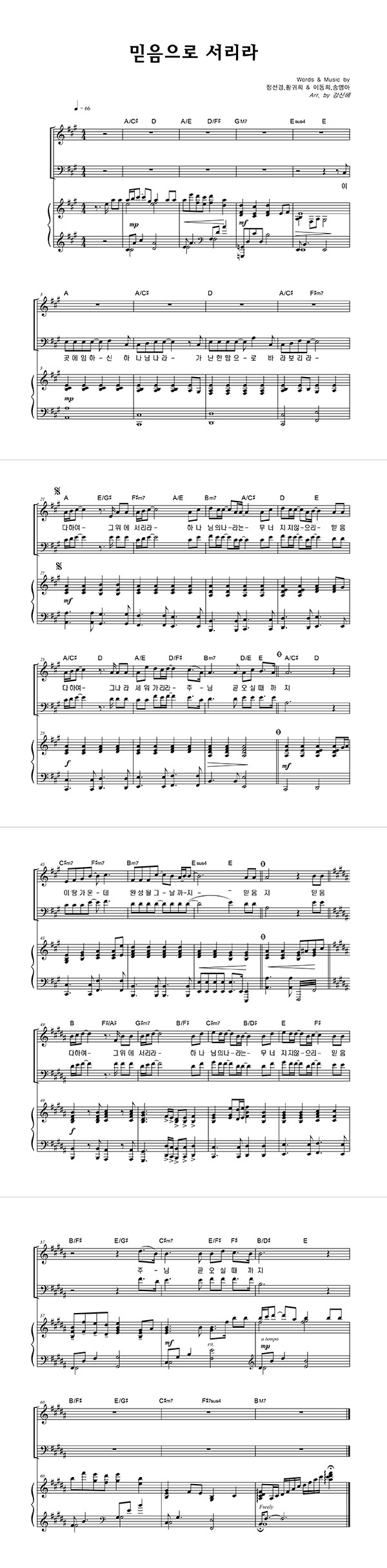 | 믿음으로 서리라 | 성가 3부 + 피아노 반주 |
