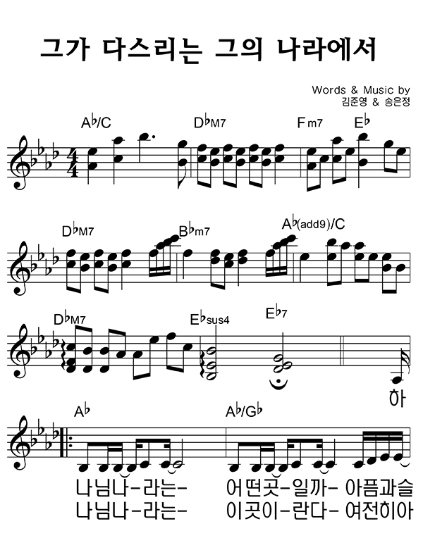 | 그가 다스리는 그의 나라에서 | 성가 4부 + 피아노 반주 |