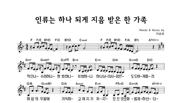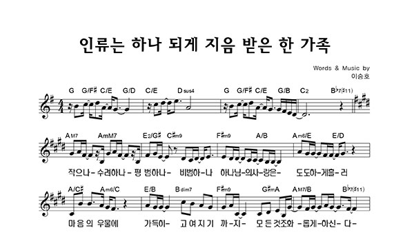 '인류는 하나 되게 지음 받은 한 가족' 의 다른 악보형식